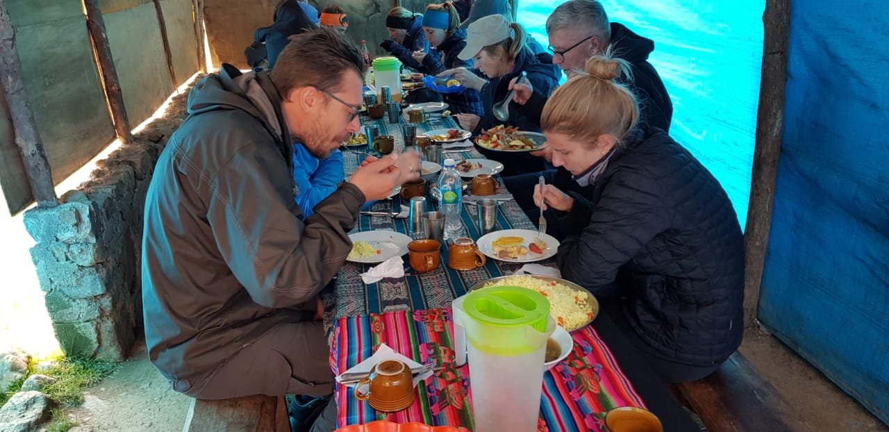 Las comidas se sirven en la carpa comedor, garantizando alimentos frescos, nutritivos y deliciosos durante todo el trekking. Por favor, infórmenos con anticipación si tiene preferencias dietéticas especiales, para que podamos planificar adecuadamente.